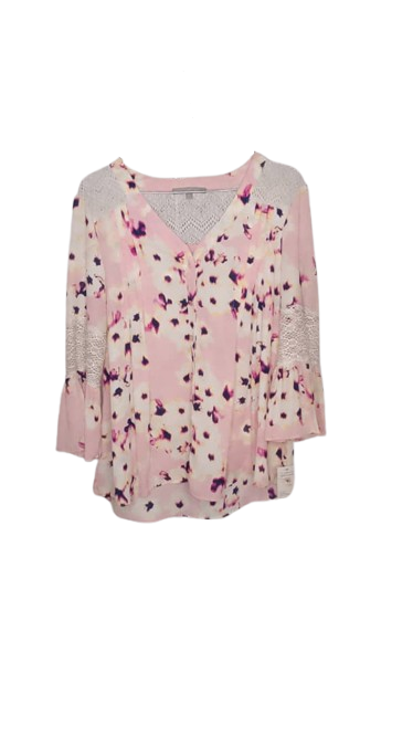 Ny Collection Floral Patterned Pink Top Size M