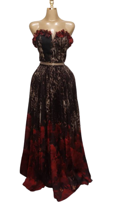 Odrella Red Multicolor Tube Flowing Gown Size 38
